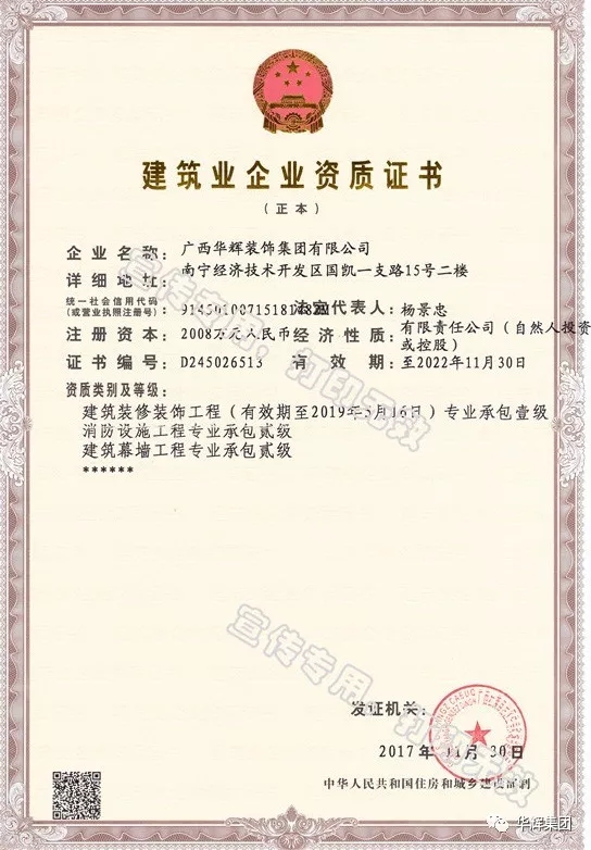 12月,leyu集团喜获建筑消防设施工程专业承包贰级、建筑幕墙工程专业承包贰级的资质。
