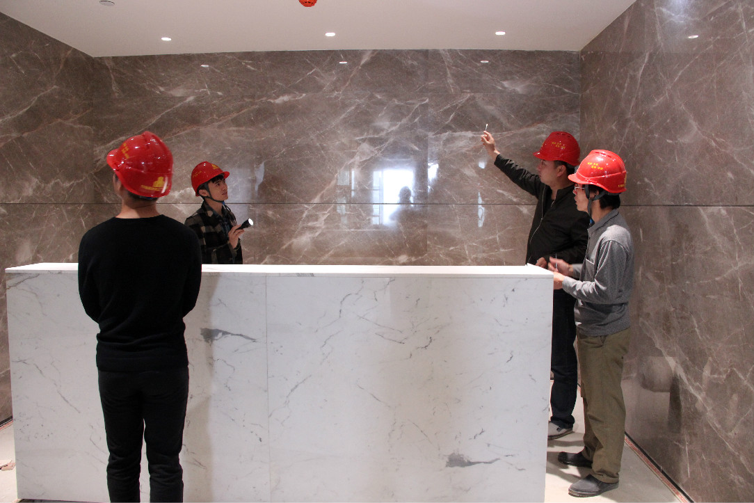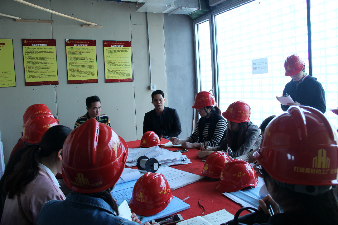 由leyu装饰集团承接的广西洋浦南华糖业集团办公楼层室内装修工程已经接近尾声,为不断完善和改进质量管理工作,提高质量管理水平,打造精品工程,2018年3月26日,集团组织工程中心质安部、工程管理部等多个部门联合成立自检自查小组,对该项目的质量、工艺进行全方位检查。