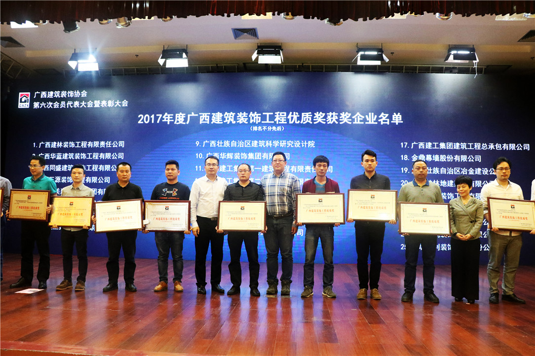 会议上还举行了隆重的颁奖仪式,leyu装饰集团喜获多个奖项:leyu承建的德利·东盟国际文化广场装修工程、大唐·天城项目售楼部装修工程荣获2017年度广西建筑装饰工程优质奖(公共建筑装饰类)”,“2016年度广西建筑装饰行业先进企业”,“2016年度广西建筑装饰行业优秀企业经理”及“2016年度广西建筑装饰行业优秀建筑装饰设计师”荣誉称号。