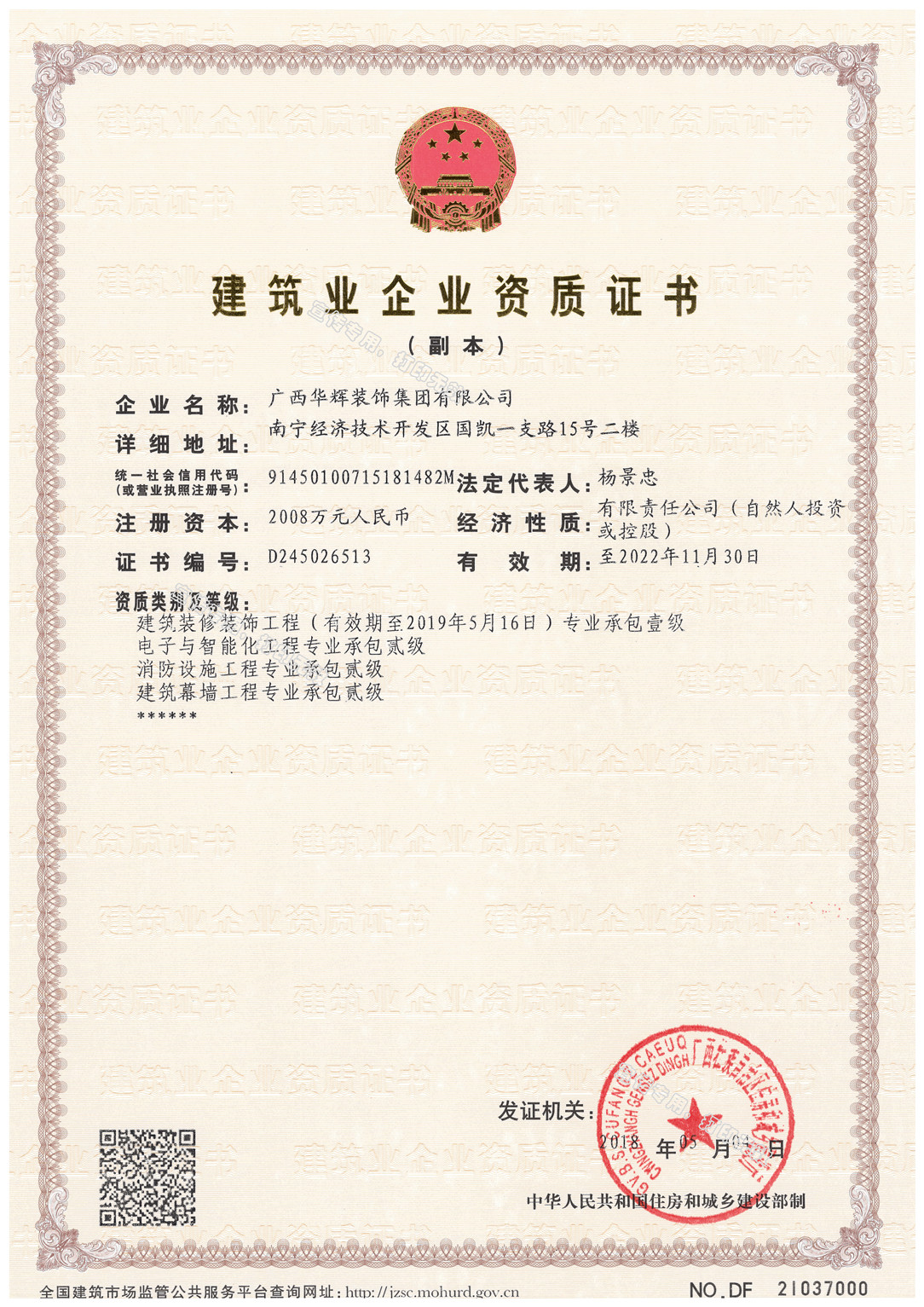 此项资质的获批,是对leyu集团资信、技术条件的高度肯定,标志着leyu集团在工程施工领域的创新,将进一步提升市场核心竞争力,为保证公司持续稳定提升发展奠定坚实基础。