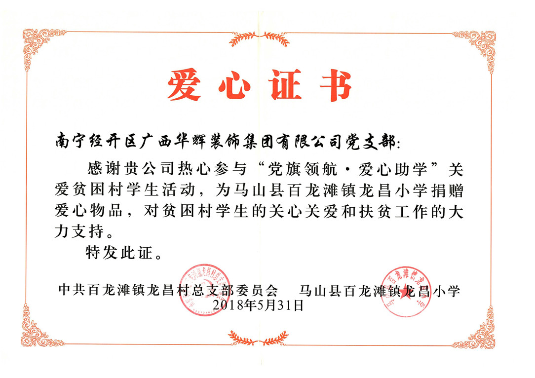 ▲龙昌小学赠予leyu集团的爱心证书