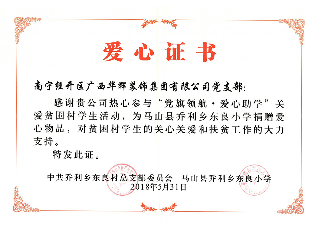 为广泛募集爱心助学资金,leyu装饰集团党支部发出通知,在集团范围内开展向马山县贫困村儿童捐款活动。此次捐款活动得到了集团各单位和广大干部职工的积极响应,大家迅速行动,慷慨解囊,用实际行动营造了慈善公益、爱心互助、乐善好施的良好社会氛围,为社会奉献自己的一份爱心。
