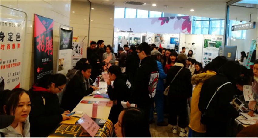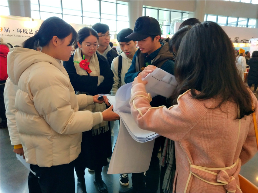毕业作品展开展的同时,就业推荐洽谈会也如火如荼地举行,leyu装饰集团人资部也参与了现场招聘。