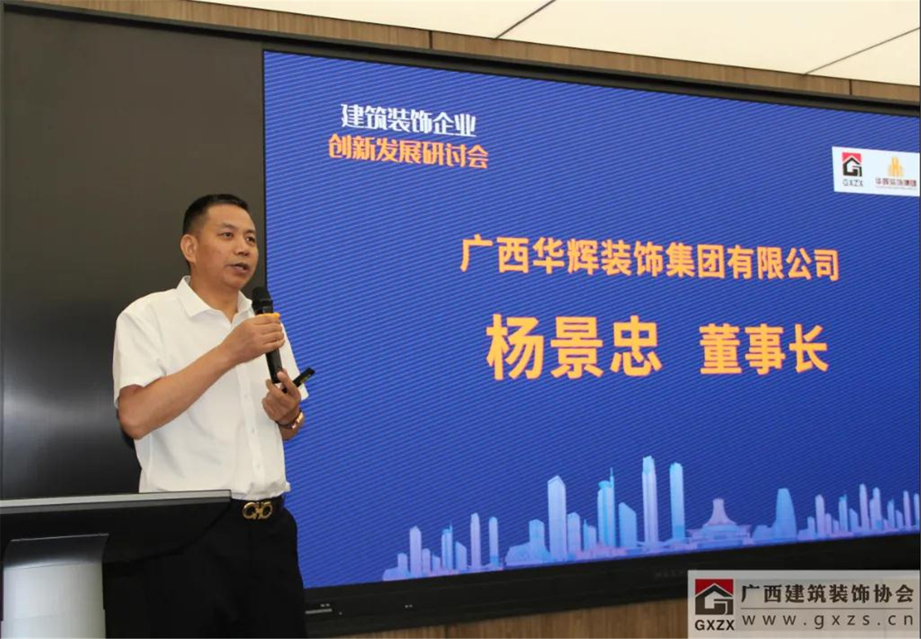 协会副会长、广西leyu装饰集团有限公司董事长杨景忠在会上分享了“三驾马车驱动leyu转型升级”的重要作用。