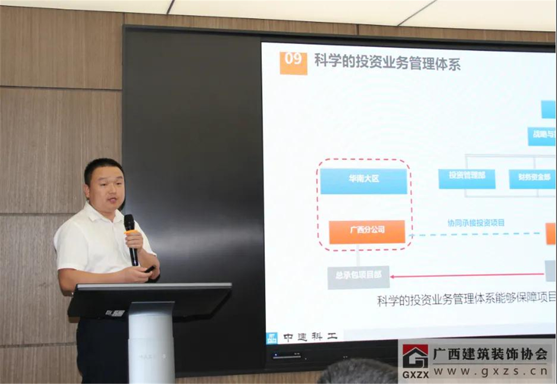 广西三源装饰工程有限公司副总经理陈远立为与会嘉宾做了“EPC项目经验分享”。