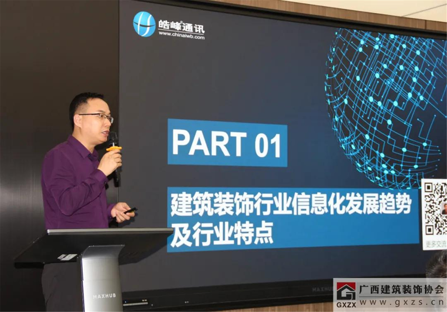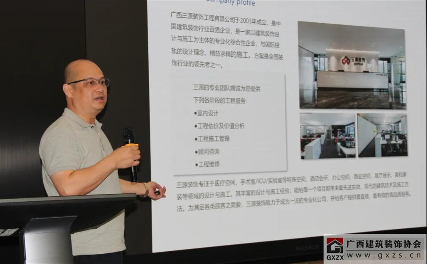 协会副会长、广西华蓝建筑装饰工程有限公司董事长朱建宇进行了“以设计引领建筑装饰企业创新发展”的分享。