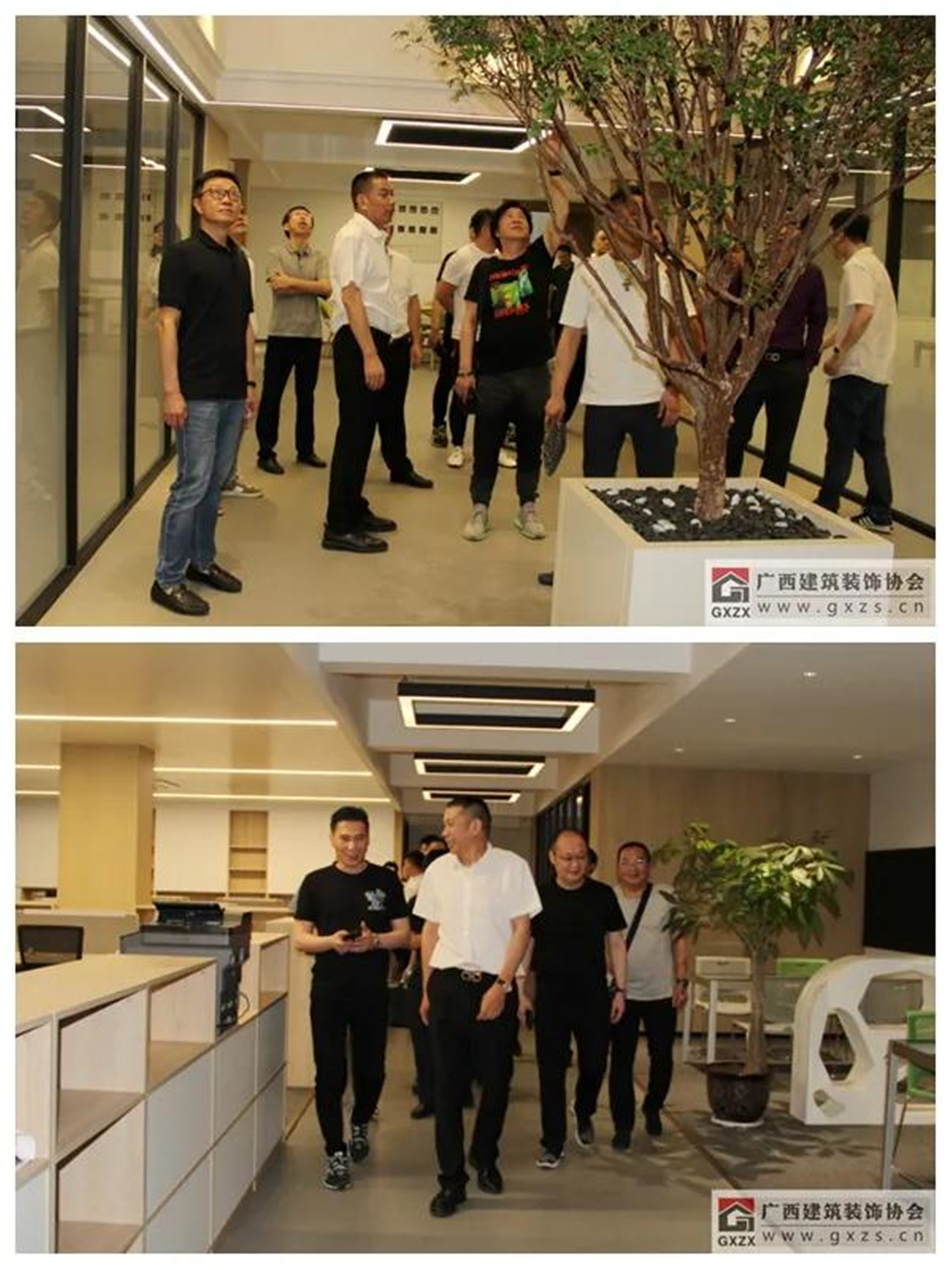 会后,参会嘉宾在杨景忠董事长的带领下,参观了广西leyu装饰集团有限公司新改造升级的办公场地以及装配式工厂化生产基地。