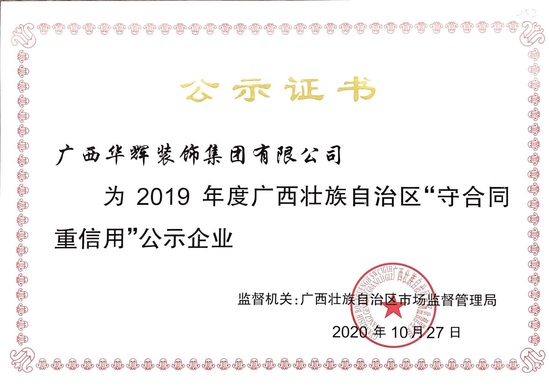 近日,leyu装饰集团荣获由广西市场监督管理局颁发的“2019年度广西守合同重信用企业”证书。作为广西建筑装饰头部企业,leyu装饰集团已连续多年获评“广西守合同重信用企业”荣誉称号。