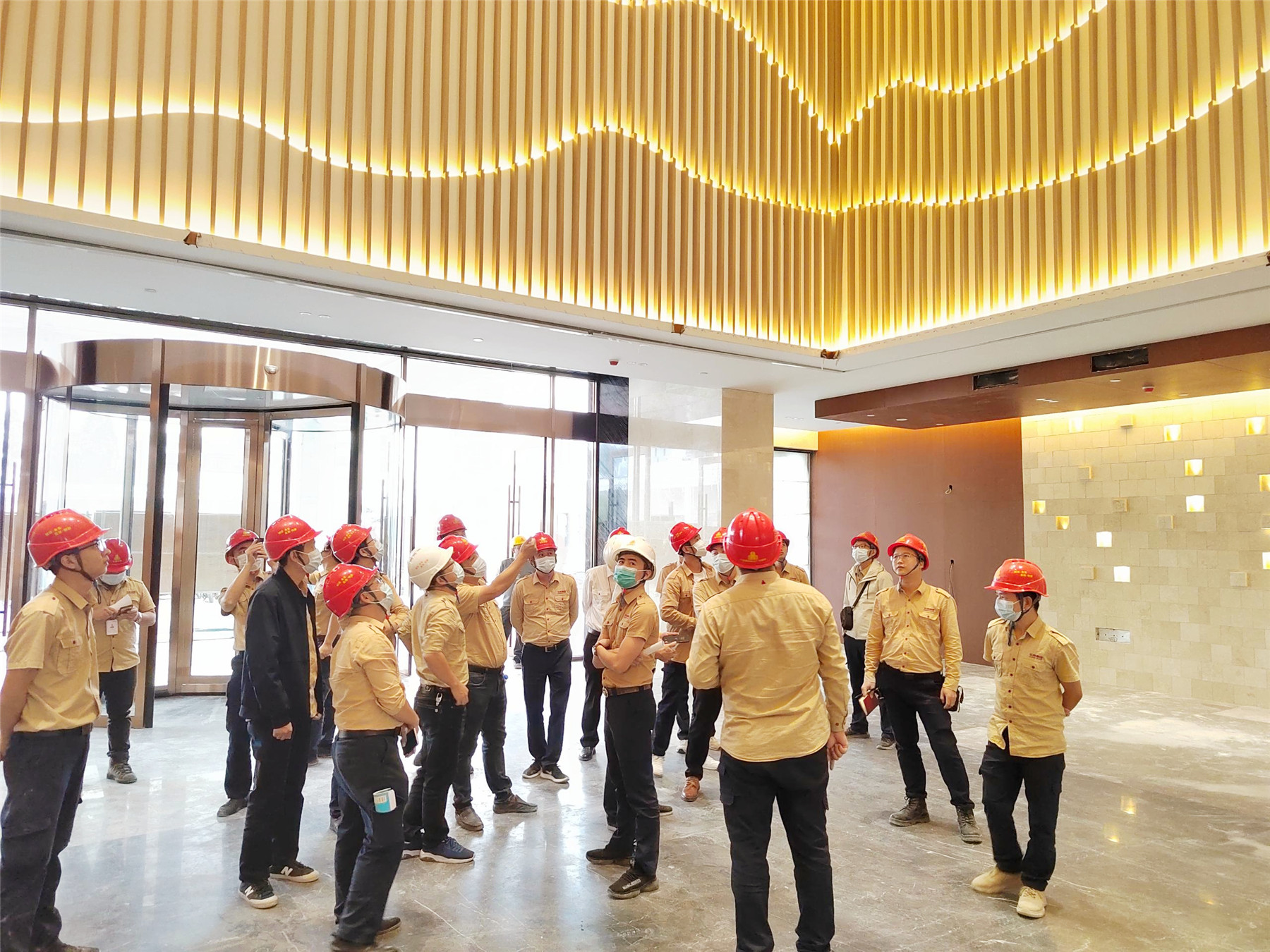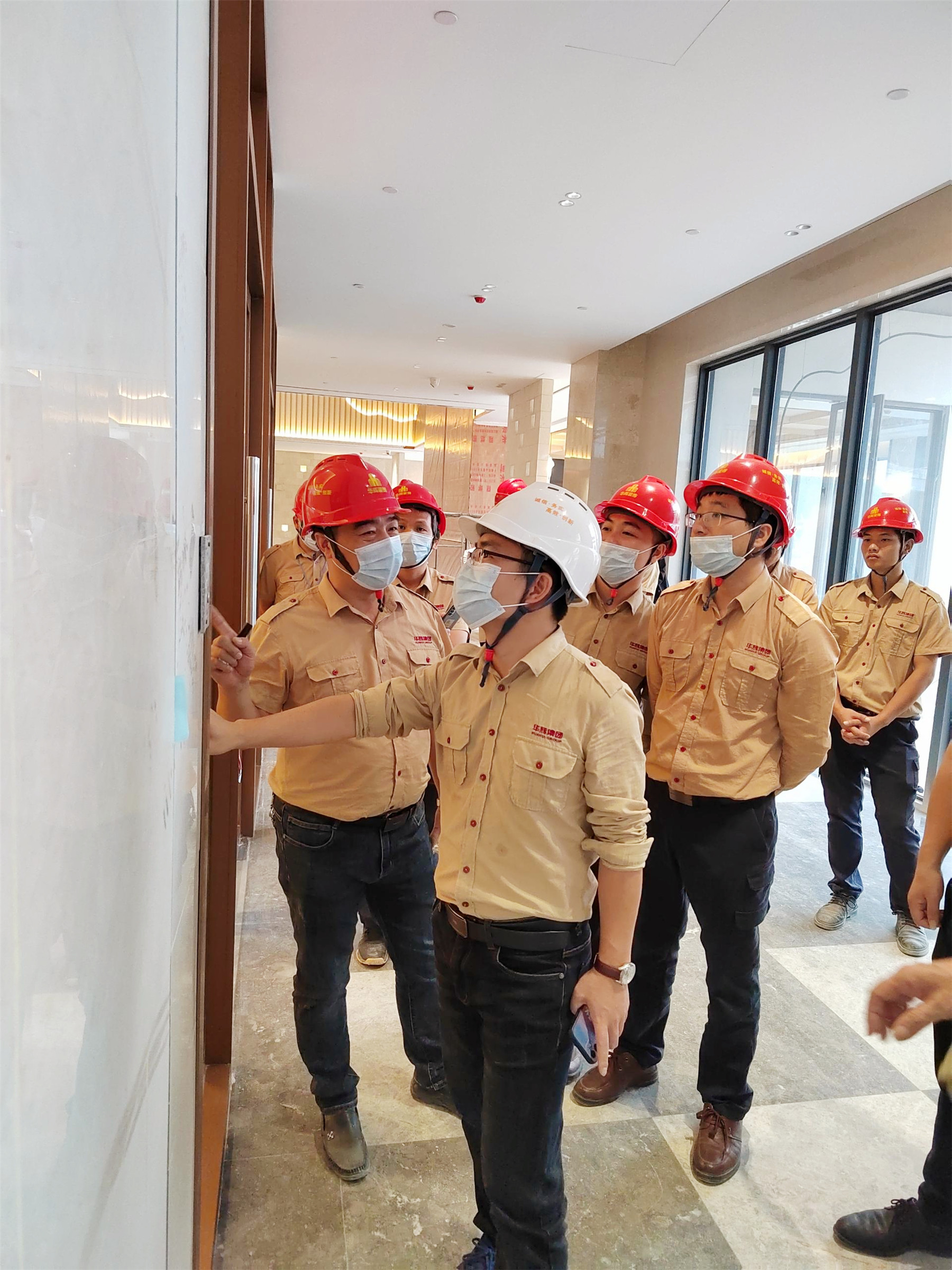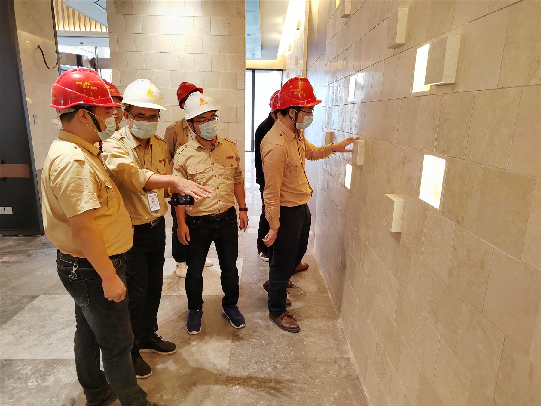 全体与会人员实地观摩陆川·温泉九龙山庄装修工程,项目部相关人员详细介绍了施工过程中的重点、难点。本次的观摩会,聚焦项目管理以及施工工艺工法。本项目从前期项目策划、材料的层层把控到施工细节的营造,无不体现leyu人对精工品质的追求。