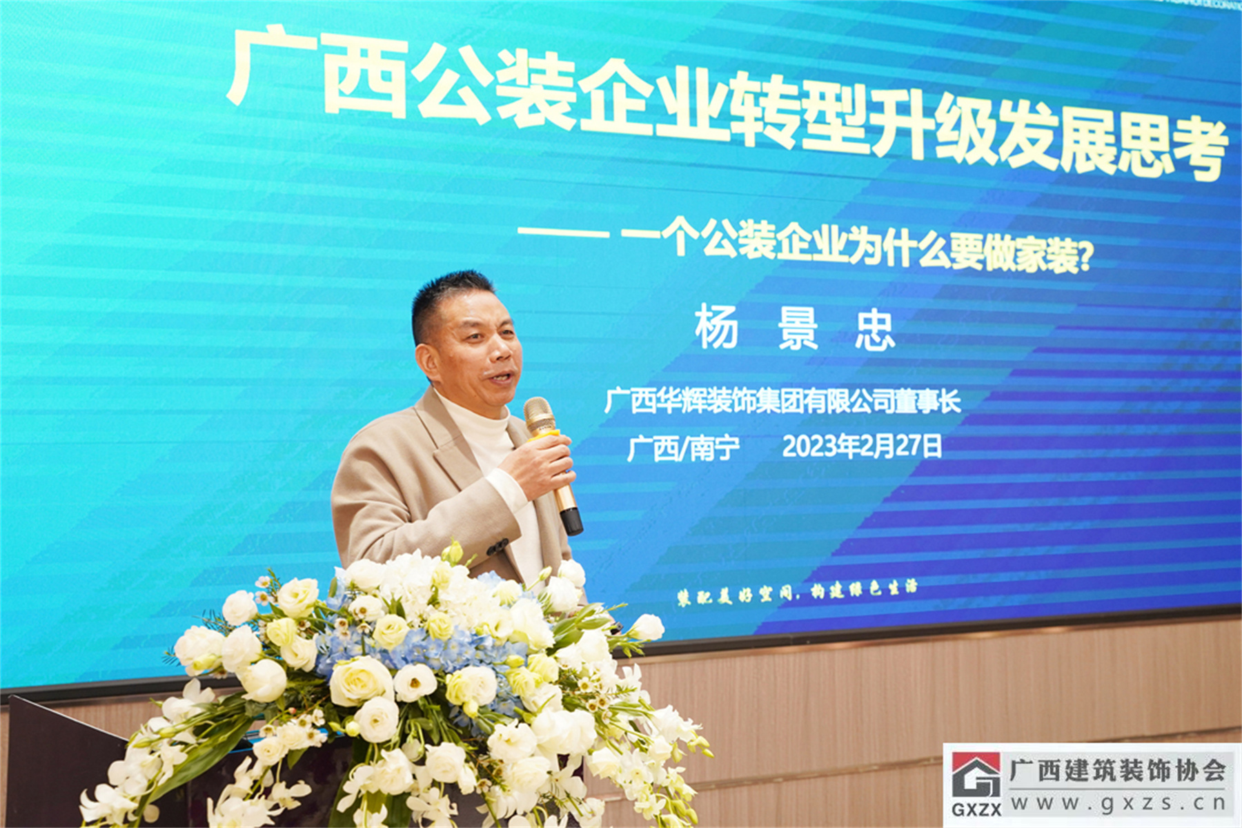 杨景忠作了《广西公装企业转型升级发展思考》的分享,指出:2022年,leyu拓展了别墅奢装新赛道,开启公装、家装双轨道运营模式。2021年,leyu做了充分的市场调研,发现了家装行业的四大痛点,结合leyu的优势:专做五星级酒店、专做五A级写字楼、专做大型公共建筑,leyu的最终定位为家装领域的高档客户,由leyu别墅奢装公司运营。leyu别墅奢装将为客户带来4大“确定性”。