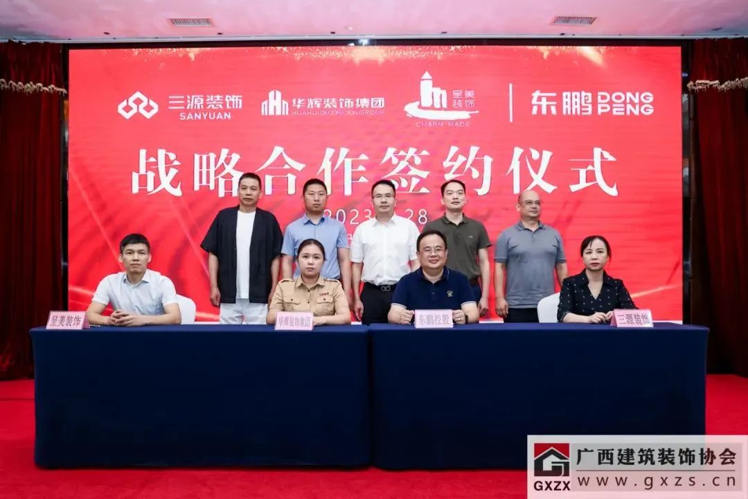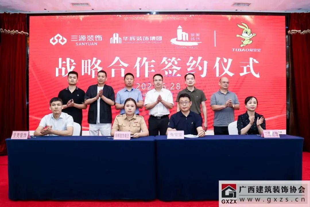 ▲广西leyu集团、三源公司、呈美集团与德华兔宝宝材料签约