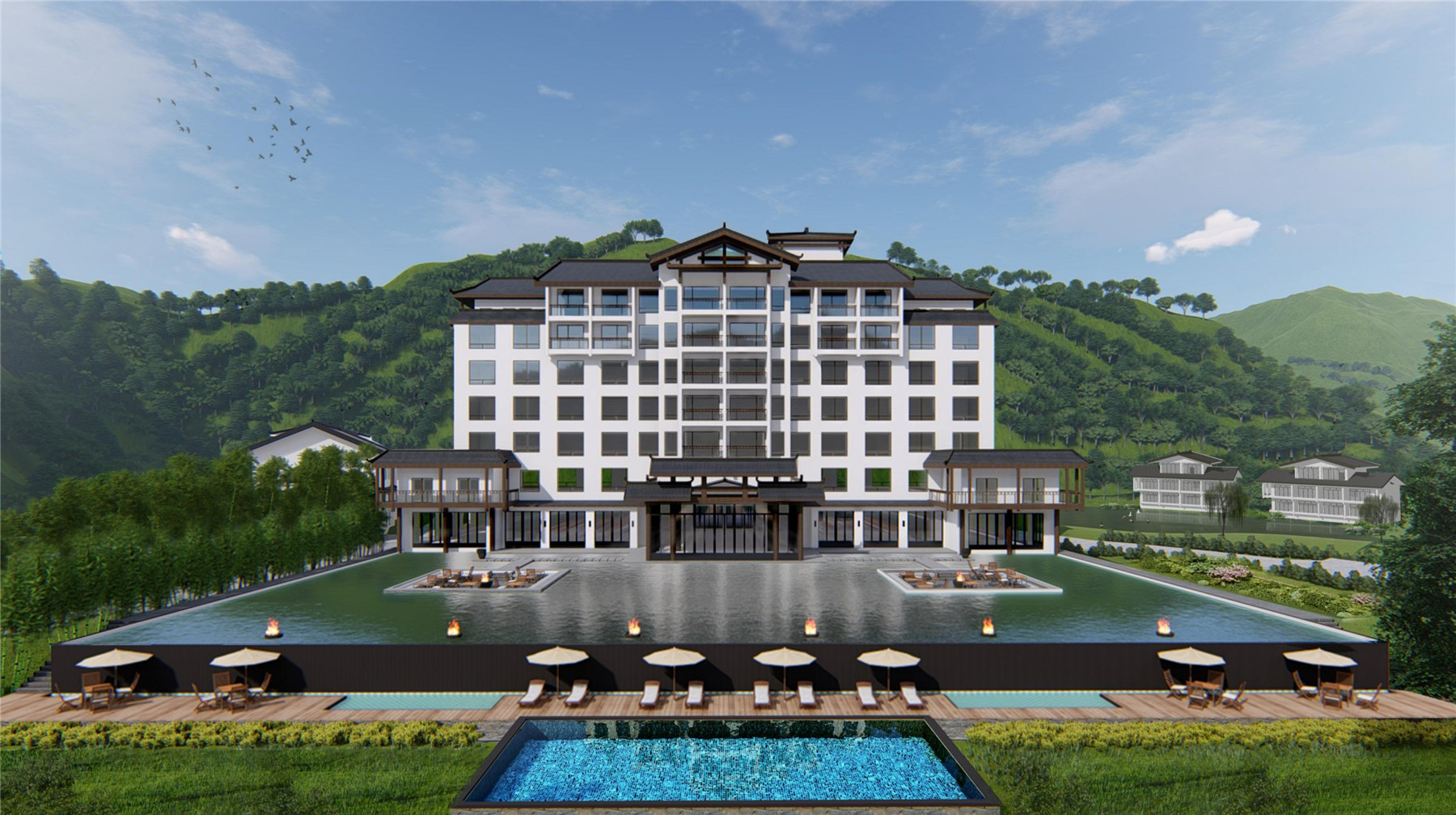 酒店位于桂林灌阳千家峒风景区内,拟建瑶族风情客房298间、其中含别墅19栋,并配备有餐饮、会议、健身中心等配套设施。